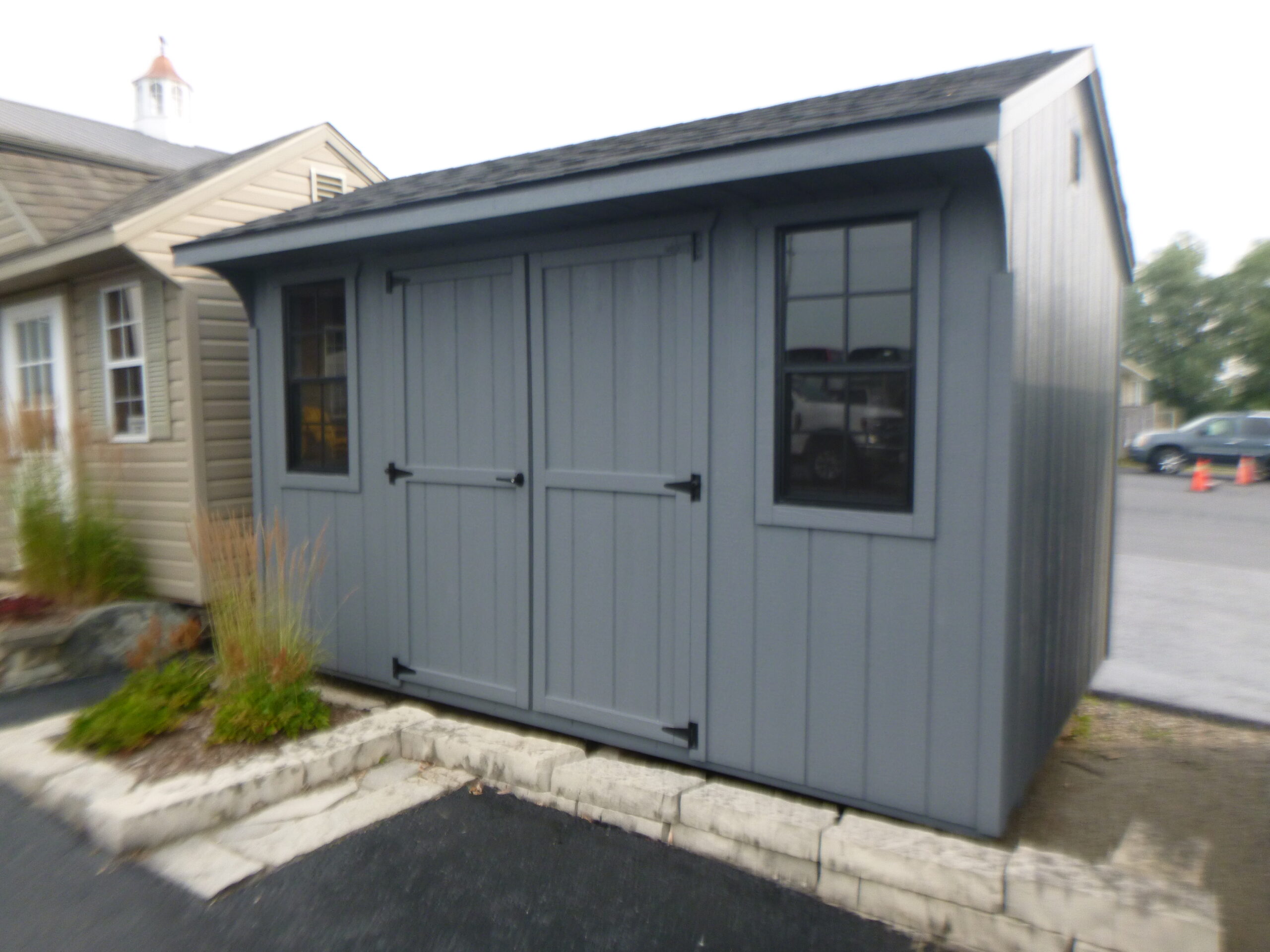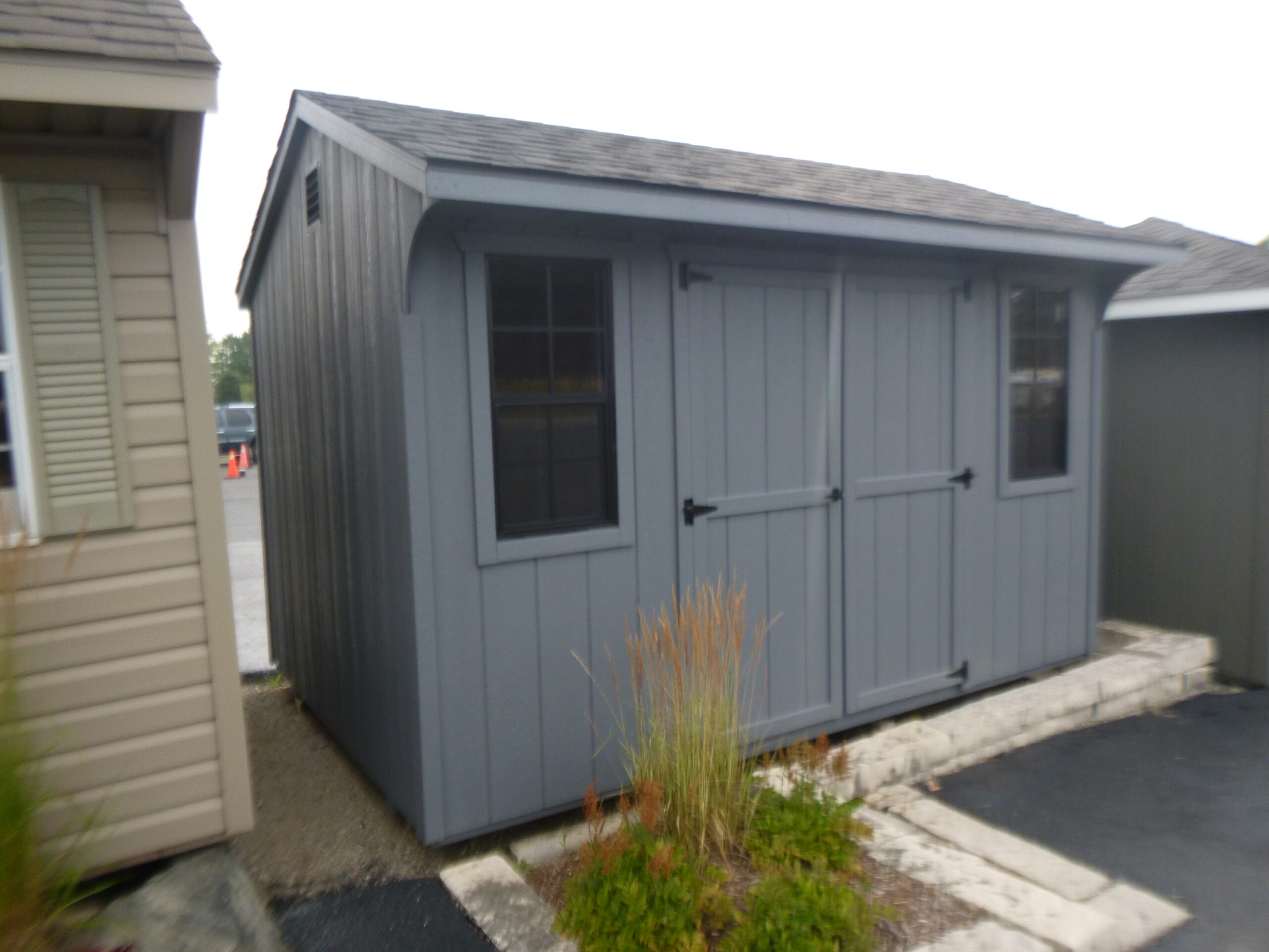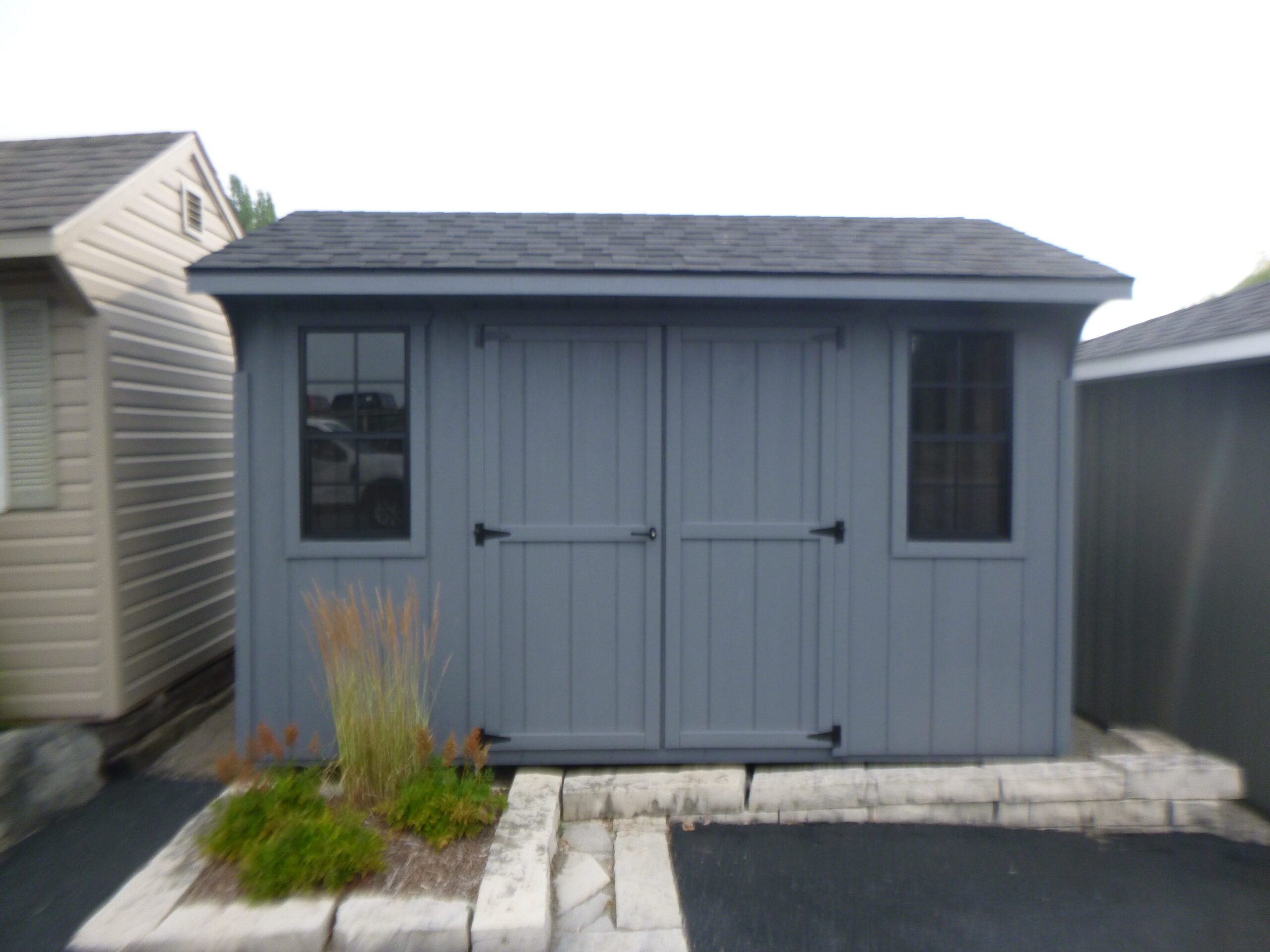 Saltbox Storage Shed DuratempFITS: Saltbox Storage Shed Duratemp8 x 12 Saltbox Storage Shed with double door, 2 Black windows, Asphalt Shingles